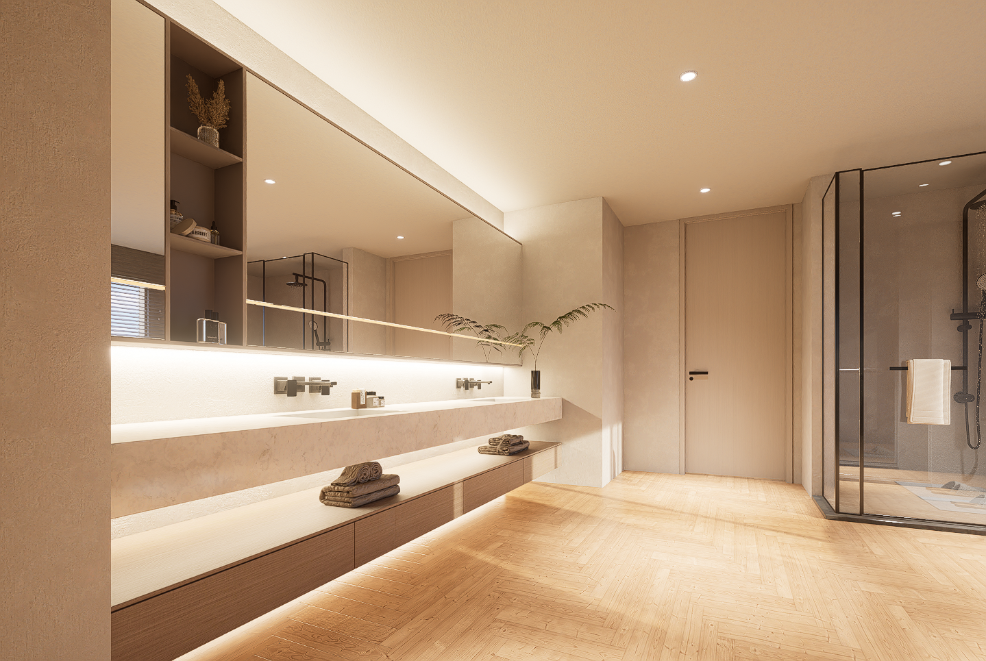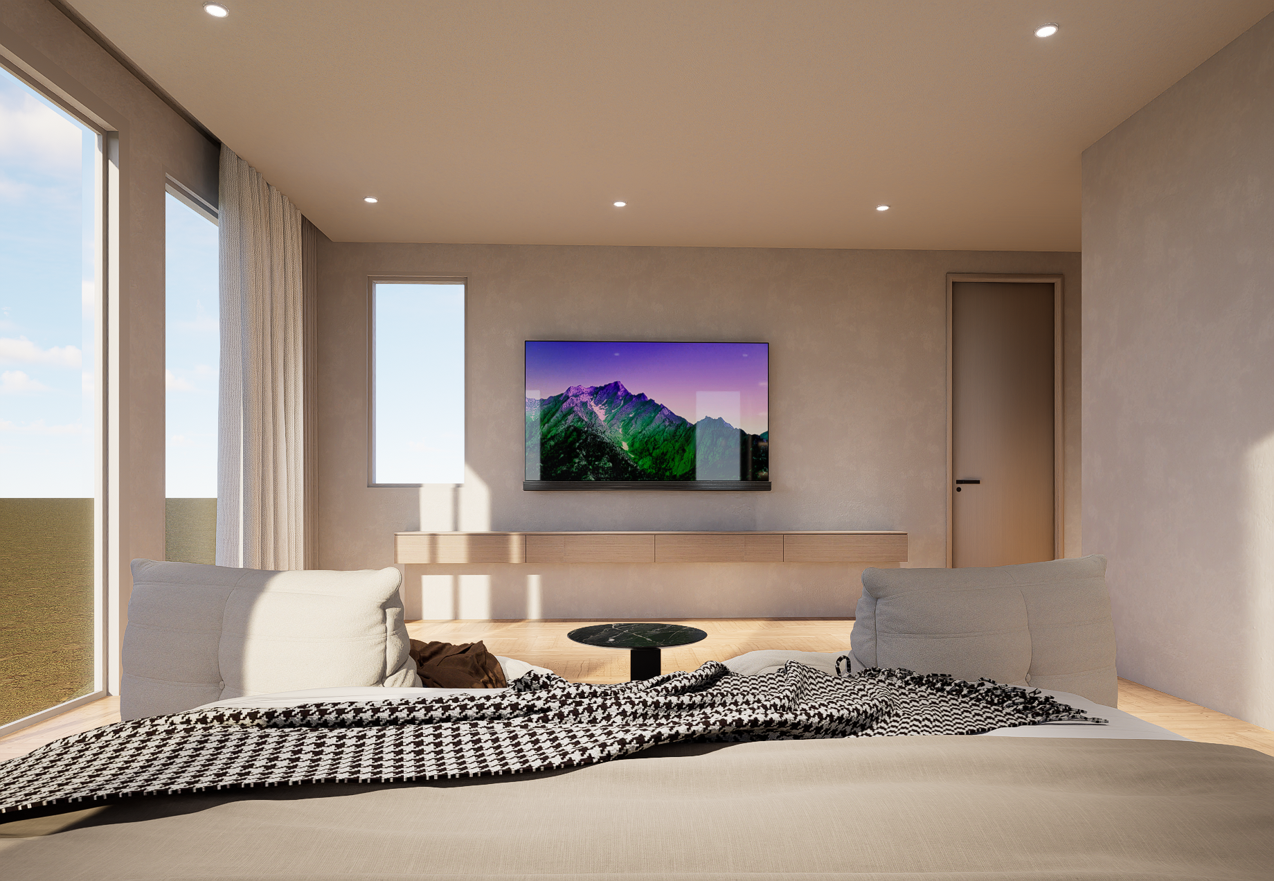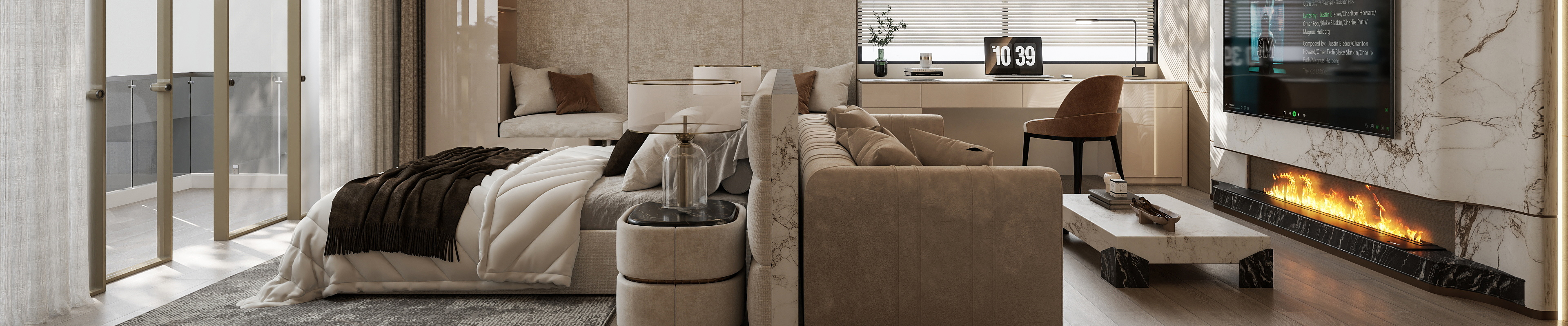 Light-Luxury Master Bedroom Interior with Integrated System