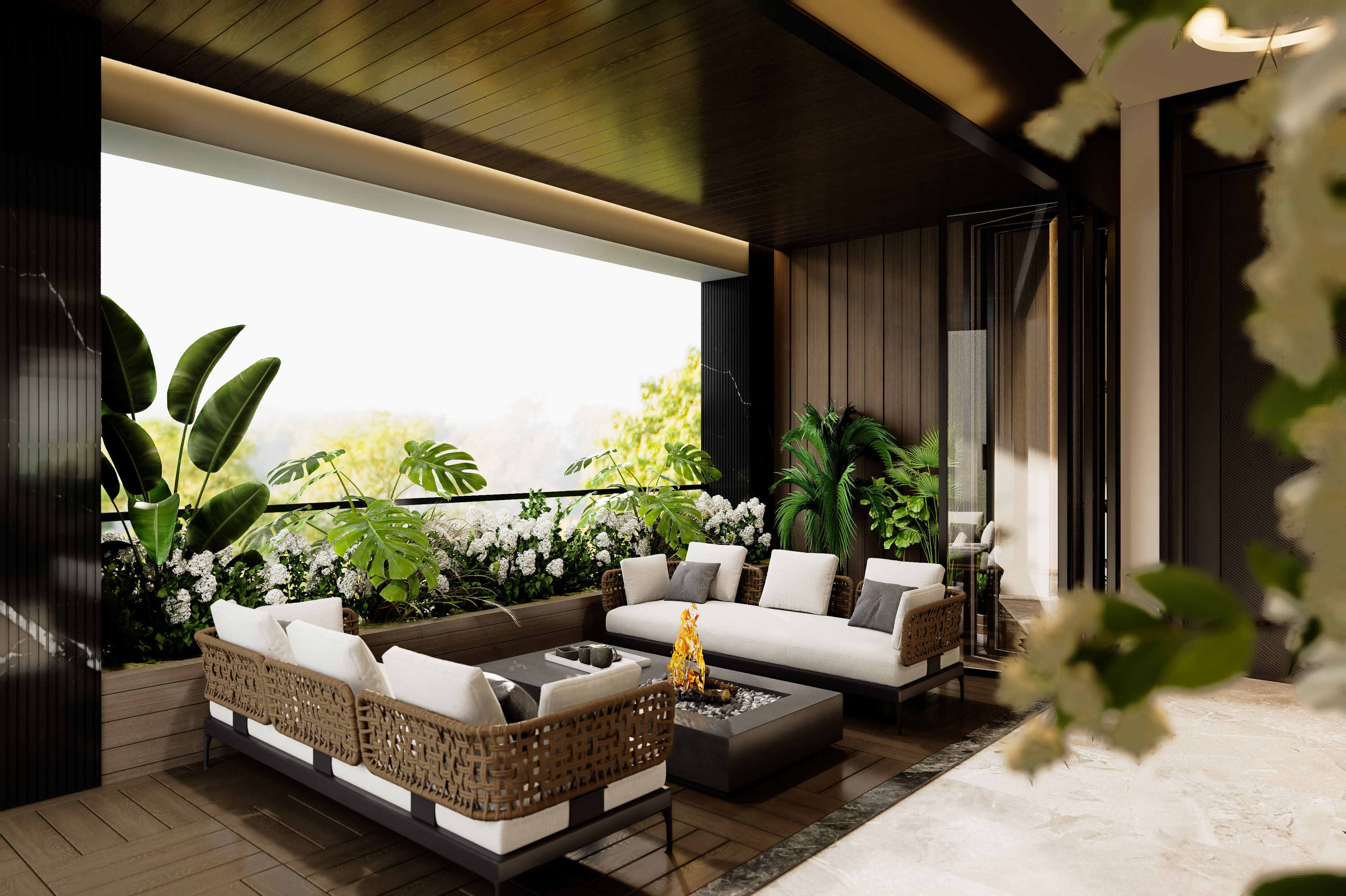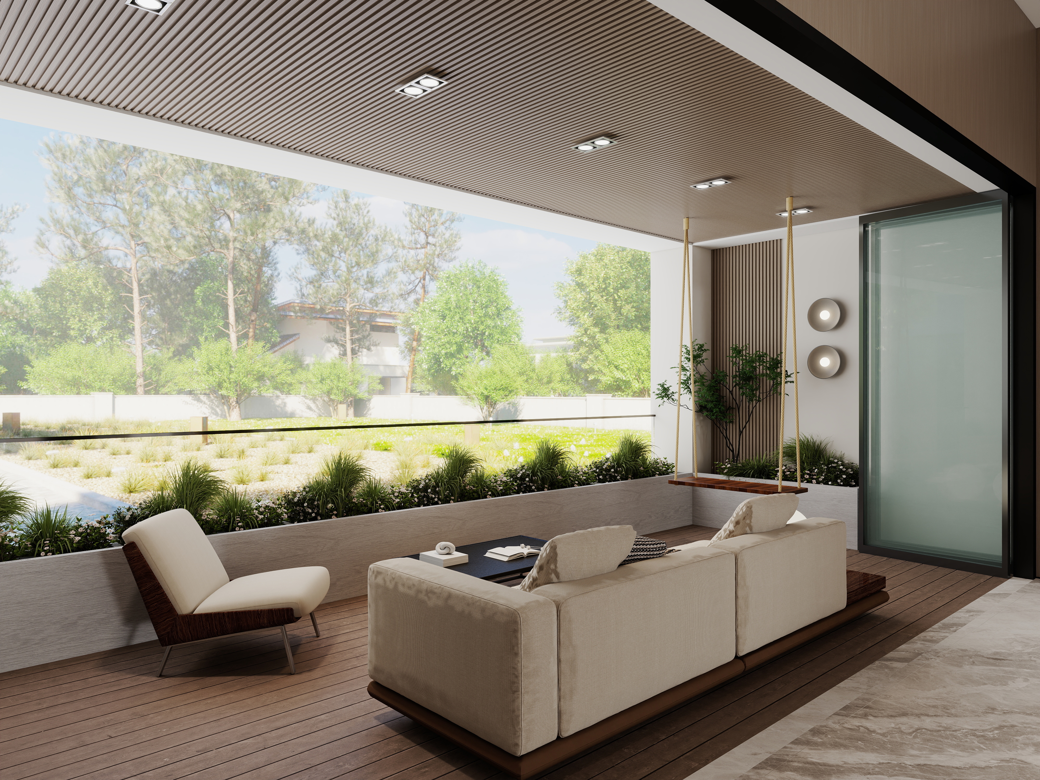 Minimalist Villa Balcony Interior with Integrated System