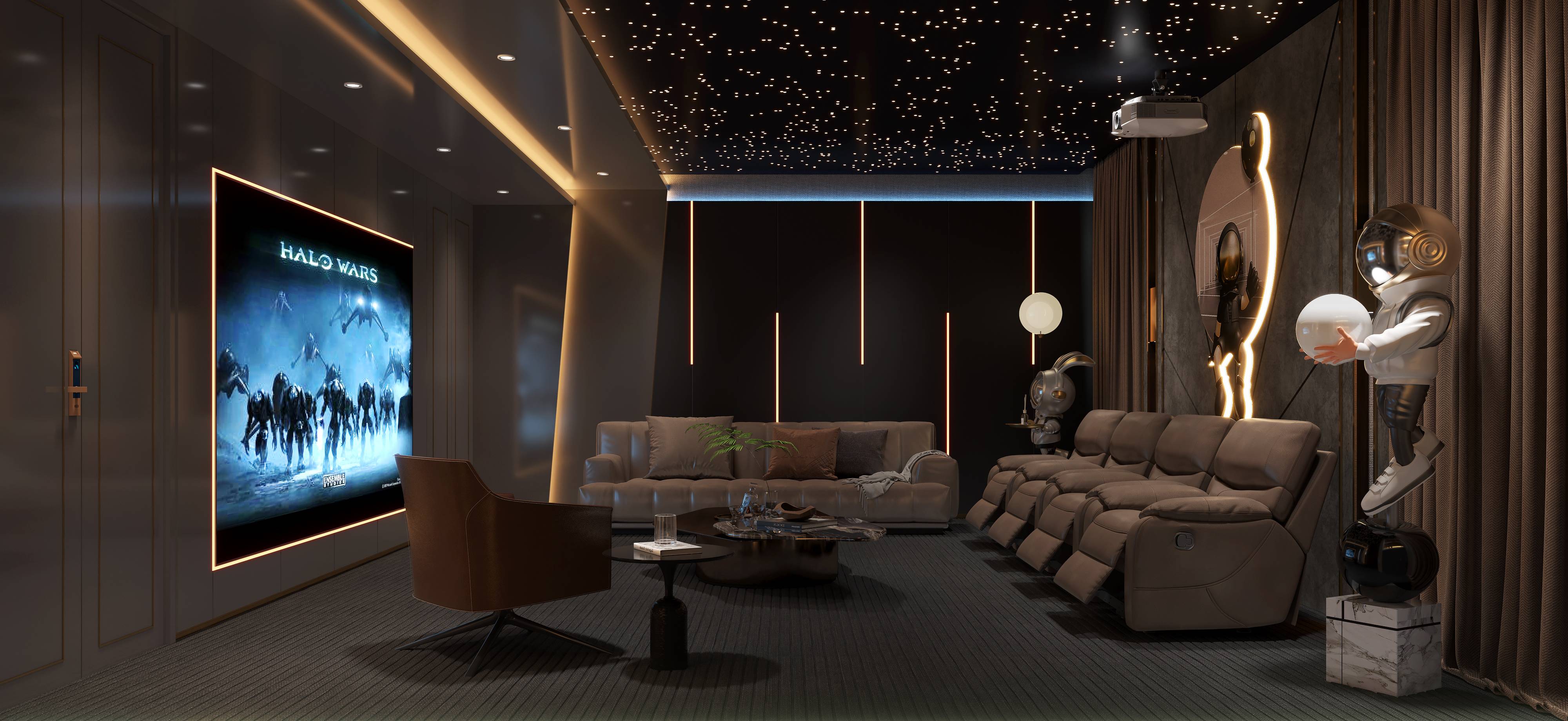 Light-Luxury Villa Entertainments Interior with Integrated System