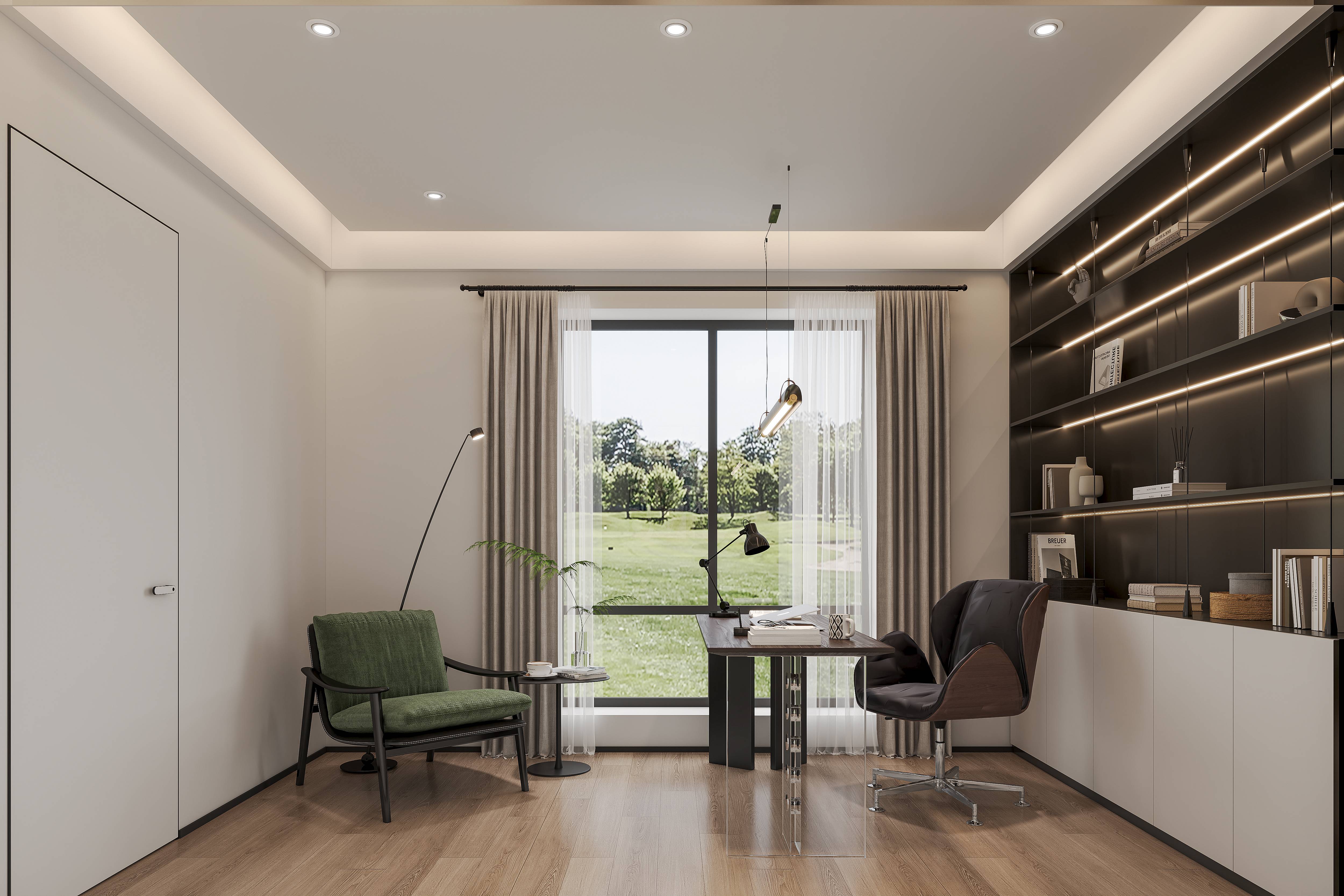 Minimalist Residential Study Interior with Integrated System
